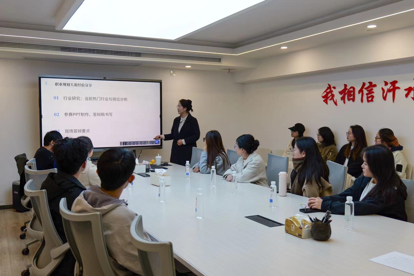 分享会上,主昕鑫结合大赛背景,详细介绍了往届比赛的获奖情况,提出“多做行业研究”的备赛要求。随后,她结合自身经历,为同学们讲解职业规划的关键步骤,包括自我定位、职业目标确定、相关实习实践经历展示以及职业展望等,她还特别提醒同学们,应充分了解企业的招聘要求,结合自身特长,将具体的职业需求与个人能力和经历相匹配,以小见大地展示求职能力,以贴合大赛的评分标准。同时,她鼓励大家保持自信,从心态和方法上为成功打下基础。