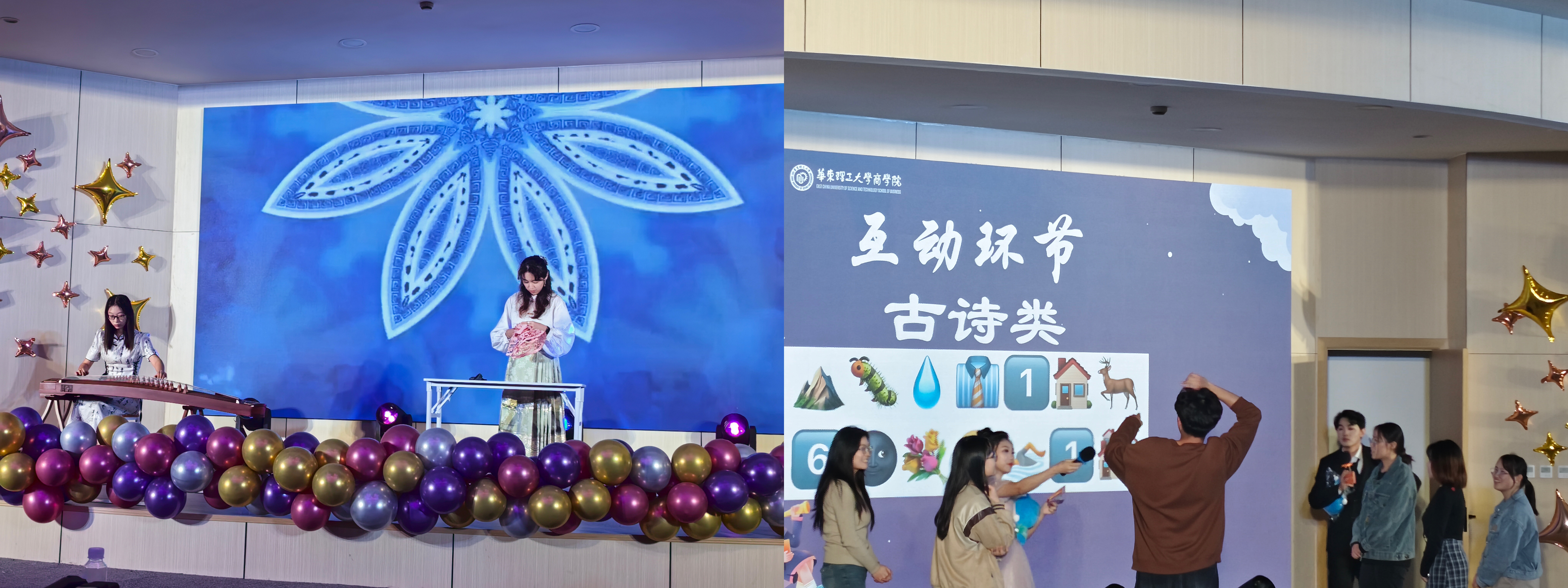 为了提升文化育人实效,11月16日晚,必赢242net官网和商学院联合举办了“鼓棹扬帆·梨梦启航”2024级研究生文艺晚会,必赢242net官网党委副书记曹娜、党政办公室副主任吴月欣、研究生辅导员孙茜、李娜,商学院研究生教学负责老师彭姝雯、李晓博,两院研究生300余人共同参加。晚会由两院2024级研究生新生万骐胜和王艺桥共同主持。