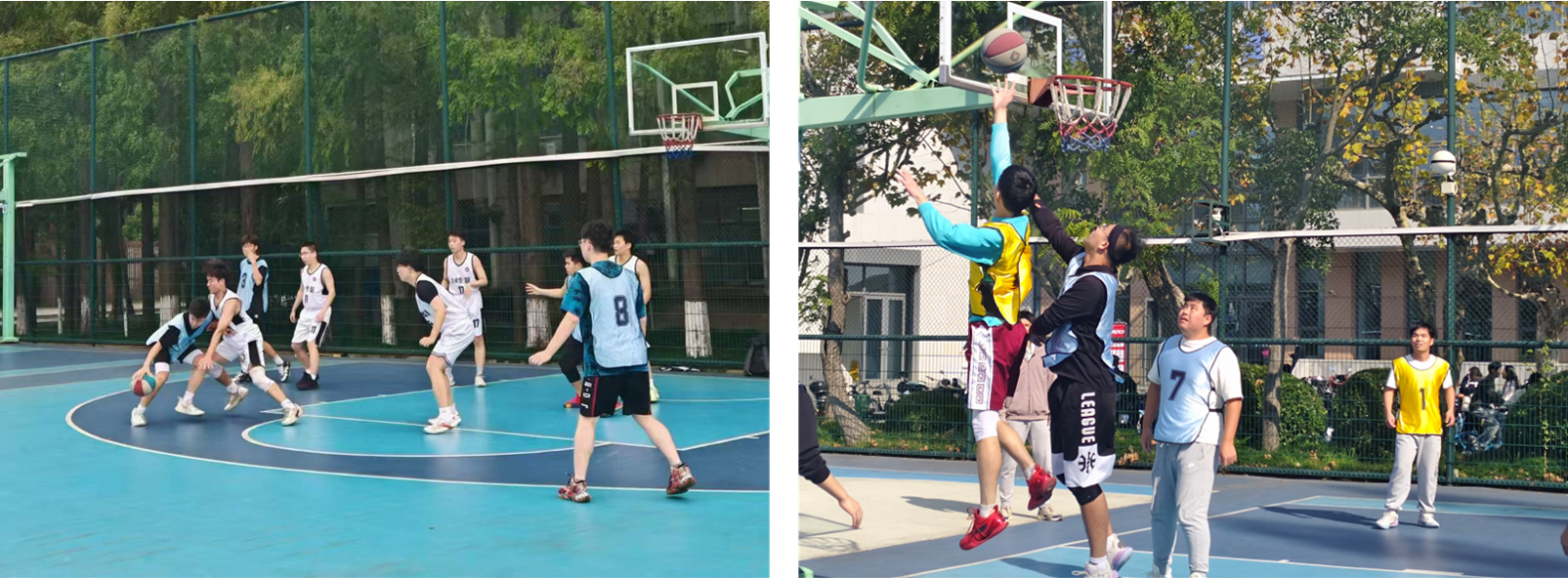 本次比赛共四支队伍参赛,分为小组循环赛、半决赛及决赛等三个阶段。10月23日,一场篮球盛宴在徐汇校区一食堂旁篮球场璀璨开启。在激烈的小组赛中,24专硕联队以其卓越的表现脱颖而出,勇夺小组赛阶段的桂冠。在半决赛的激烈角逐中,24专硕联队因队员受伤遗憾告负,这使得他们不得不带着遗憾离开了冠军的争夺舞台。尽管如此,他们的表现依然值得尊敬和赞扬。与此同时,海豹突击队和23专硕联队凭借出色的表现,成功晋级冠军争夺战。