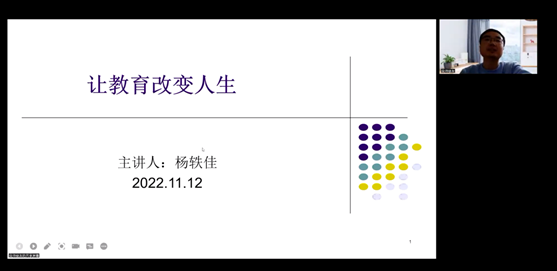 为全面落实师院党委“21122”总体工作思路,进一步提高师范生培养质量,助力师院内涵式高质量发展和唐山市基础教育事业高质量发展,2022年11月12日晚,beat365在线唯一官网通过腾讯会议举办“名师讲堂”活动。此次讲座的主题为:“让教育改变人生”,邀请了石家庄市第二十八中学教务主任、优秀班主任杨轶佳老师主讲,活动由beat365在线唯一官网教师胡志洋主持。