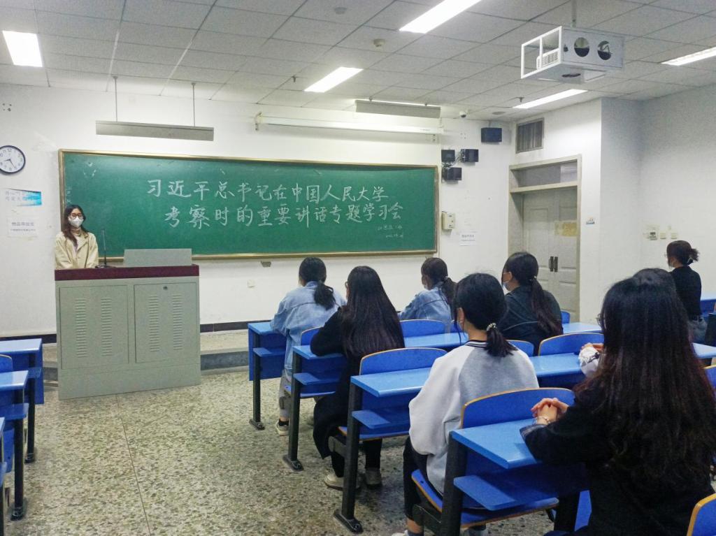 4月26日上午,beat365在线唯一官网团总支书记李思思主持召开“习近平总书记在中国人民大学考察时的重要讲话精神专题学习会”。学院团总支、学生会、理论社团负责人及各班团学干部共计50人参加专题学习会。学习会上,李思思老师带领团学干部共同观看了习近平总书记在中国人民大学考察的新闻报道,领学了习近平总书记重要讲话精神,团学干部交流了学习体会。李思思老师就学习贯彻习近平总书记重要讲话精神提出了三点要求。一是各团支部迅速组织开展主题团日活动,领悟习近平总书记对青年的殷切期望,要联系实际学,带着感情学,学出信仰,学出担当,体现各团支部的特色。二是团总支、学生会、理论社团要组织“青春心向党·奋进新征程”主题活动,通过丰富多彩的学生活动引导广大学生听党话,跟党走,以实际行动迎接党的二十大胜利召开。三是做好新媒体宣传工作,及时全面展示beat365官网的学习成果,展示beat365在线唯一官网学生的良好精神风貌。