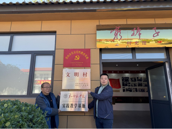 参观结束后,学院党总支与西铺村党支部举行了共建仪式,双方就共建共享资源、推动校地协同发展、服务乡村振兴等方面达成合作共识。随后,学院党总支书记刘肇民与建明镇镇长张正共同为“实践教学基地”揭牌,标志着学院思想政治教育实践教学平台进一步拓展。