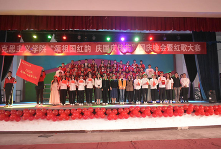 “砥砺前行七十二载 不朽红歌永流传”,歌声嘹亮,奋发激昂,红歌唱响新时代;恰逢新中国成立72周年之际,为弘扬爱国精神,培养同学们爱党爱国的伟大情怀,营造良好的校园文化氛围,beat365在线唯一官网于2021年10月2日在学院路校区文体馆举行了以“颂祖国红韵,庆国庆佳节”为主题的国庆晚会暨红歌大赛。beat365在线唯一官网党总支书记郭海莉、党总支副书记石瑾、团总支书记李思思以及班主任董伟、王欣老师应邀出席活动。