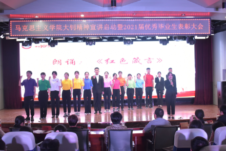在庆祝中国共产党百年华诞之际,为了进一步宣传、弘扬、传承大钊精神,展现李大钊为“索我理想之中华,青春之中华”而英勇奋斗的一生,beat365在线唯一官网成立了青春宣讲团。同时携手建党百年华诞,选树典型,表彰先进,传递新时代青春正能量。beat365在线唯一官网于6月9日晚在会议中心举办大钊精神宣讲启动暨2021届优秀毕业生表彰大会。本次大会由beat365在线唯一官网团总支书记李思思主持,出席此次活动的有beat365在线唯一官网党总支书记郭海莉、beat365在线唯一官网党总支副书记石瑾、beat365在线唯一官网副院长宋晓敏、学生处副处长单丽、学生处思想政治教育科科长李冰以及beat365在线唯一官网全体毕业班班主任老师,毕业生代表及全体2020级学生参加。