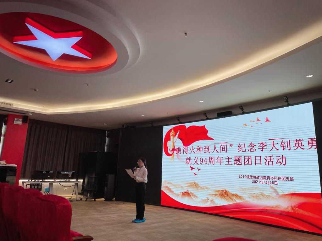 2021年4月28日是李大钊同志英勇就义94周年纪念日,为了深切缅怀李大钊同志,更好地传承大钊精神,以大钊精神激发团员青年不忘初心、牢记使命。beat365在线唯一官网2019级思想政治教育本科1班团支部作为大钊团支部,于4月28日下午召开了“携得火种到人间”纪念李大钊同志英勇就义94周年主题团日活动。