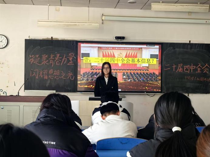 为深入学习宣传贯彻党的二十届四中全会精神,引导青年学子准确把握全会核心要义,筑牢信仰根基、凝聚奋进力量,beat365在线唯一官网中国特色社会主义理论社团于2025年12月2日和14日分别在学院路校区马院教学楼101会议室和大学道校区北苑文科楼401教室举办了“筑牢思想之魂,践行初心使命”二十届四中全会专题宣讲活动。