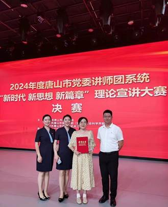 6月14日,由唐山市委宣传部、市委讲师团(市社科联)、市直机关工委主办的第三届理论宣讲大赛在唐山广播电视台演播大厅举办。本次大赛以“新时代·新思想·新篇章”为主题,来自全市18个县(市、区)、各大专院校、市直有关部门共39支代表队报名参赛,最终有14支队伍脱颖而出来到最后的决赛舞台。beat365在线唯一官网王欣、曹妍、韩冰三名教师在领队赵婉华的指导下顺利通过初赛进入了决赛,并获得了三等奖的好成绩。