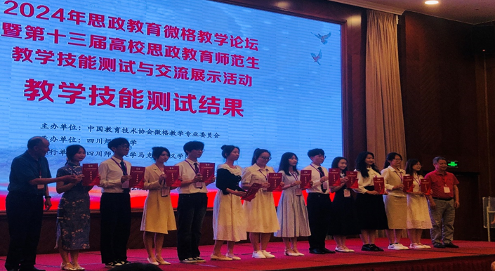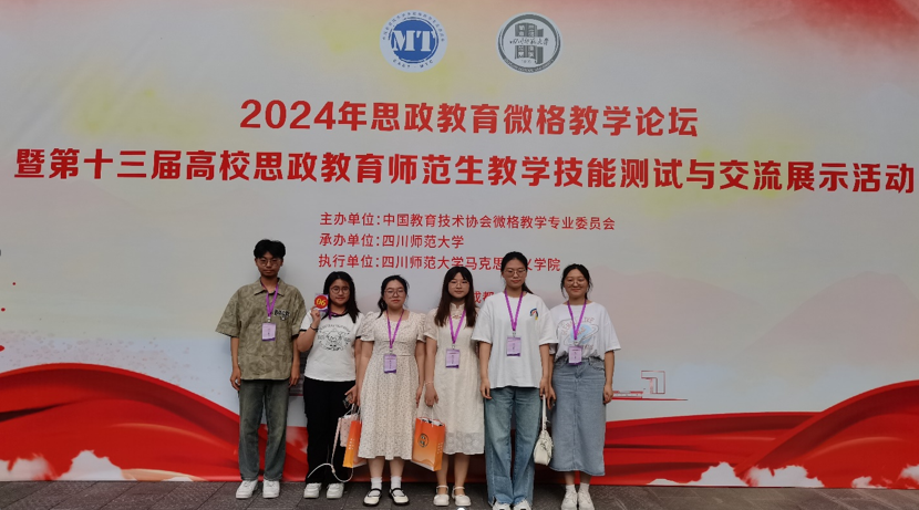 5月24日-5月27日,由中国教育技术协会微格教学专业委员会主办,四川师范大学承办的2024年第十三届高校思政教育师范生教学技能测试与交流展示活动在四川成都举行。本次活动共有来自华中师范大学、广西师范大学、东北师范大学等来自全国各地93所师范类高校共计547名师范生同台竞技。beat365在线唯一官网2021级思想政治教育专业学生高伊琳、王瑶,2022级思想政治教育专业学生陈禹萌、郝雨佳、2023级思想政治教育专业学生陈伟佳、腾勃硕参加了此次教学展示活动。