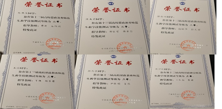 参赛同学在指导老师的精心指导下,凭借充分的赛前准备、精心的教学设计和自信的现场展示,在教学技能测试中取得佳绩。六名选手分获教学技能展示二等奖2项,三等奖4项;其中陈禹萌、陈伟佳荣获教学技能展示二等奖,高伊琳、王瑶、郝雨佳、腾勃硕荣获教学技能展示三等奖。
