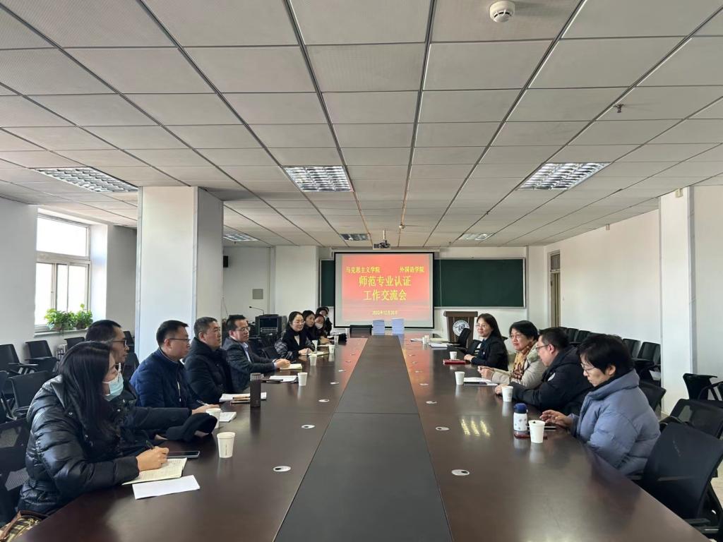 2023年12月20日上午,beat365在线唯一官网执行院长宋晓敏率思想政治教育专业认证工作小组成员赴外国语学院就师范专业认证工作进行学习交流。外国语学院党总支书记刘建宏、院长唐翠云及专业认证成员热情接待了马院教师。