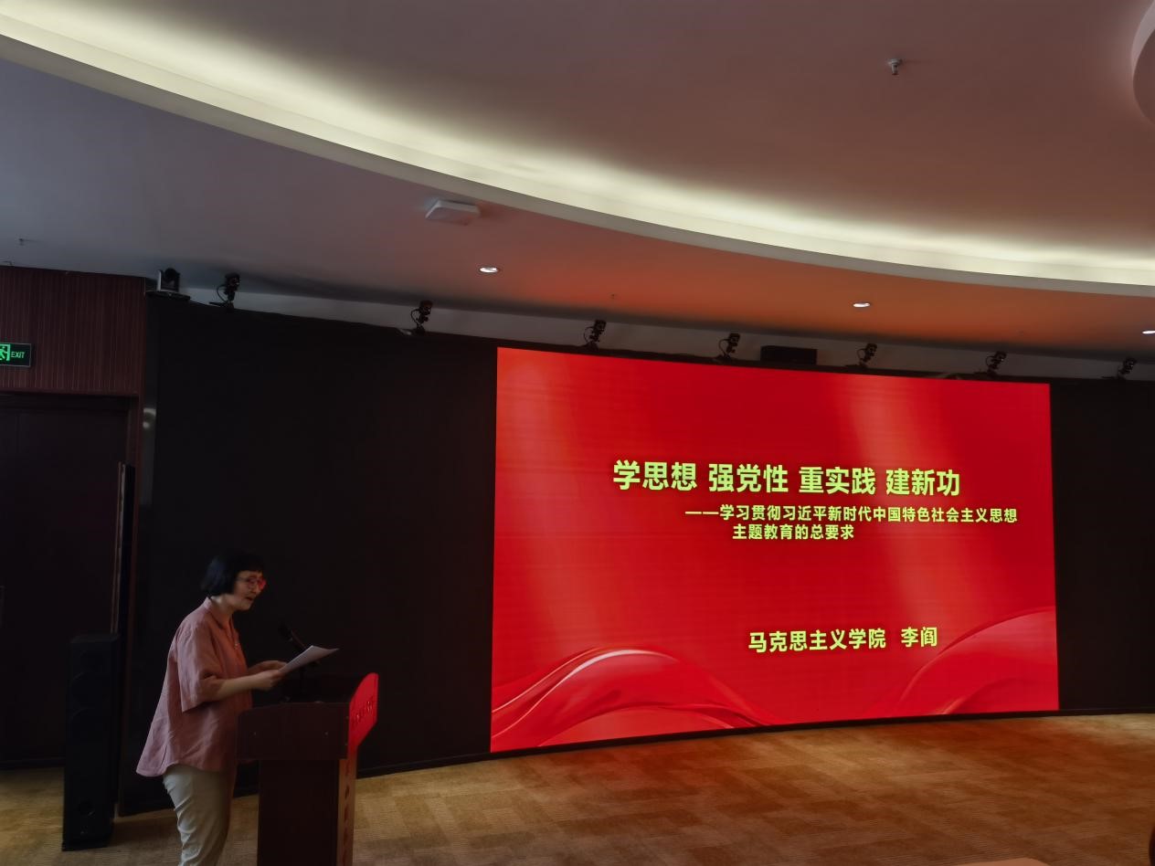 beat365在线唯一官网教师第三党支部书记李阎以《学思想 强党性 重实践 建新功——学习贯彻习近平新时代中国特色社会主义思想主题教育的总要求》为题讲授专题党课。她分别从“为什么学——主题教育的重大意义”“怎么学——主题教育的总要求”“学什么——理论学习权威教材”三个方面作主题教育学习辅导,指出作为思政课教师、思政专业的学生,在学习过程中应该“带着自信学、带着底气学、带着思考和方法学、带着使命学”,并结合《习近平新时代中国特色社会主义思想概论》课程教学情况、学情调研情况等进行学习、工作心得分享,突出了beat365在线唯一官网依托学科优势,通过深入学习贯彻习近平新时代中国特色社会主义思想,将能够在理论阐释和理论宣讲方面发挥独特作用。