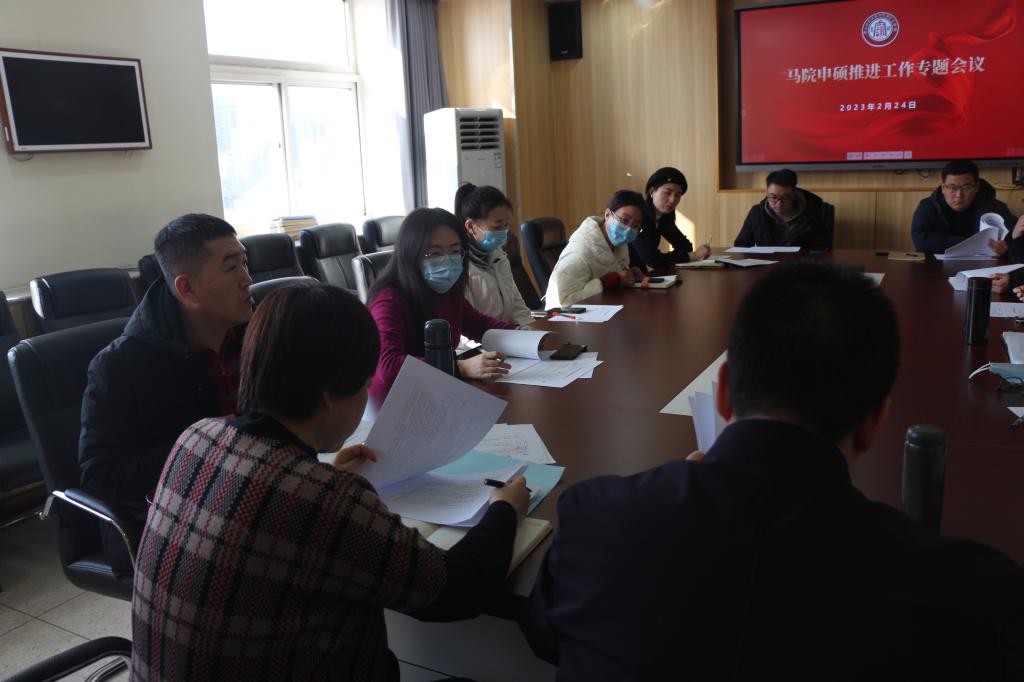 宋晓敏院长对下一步工作进行了部署,进一步明确了工作分工、任务清单和时间表,要求马克思主义理论学科申硕工作小组成员一定要严格对照申报指标体系,找差距、补短板、强底板,不断优化完善相关申报数据和材料,确保高质量完成申硕准备的各项任务。