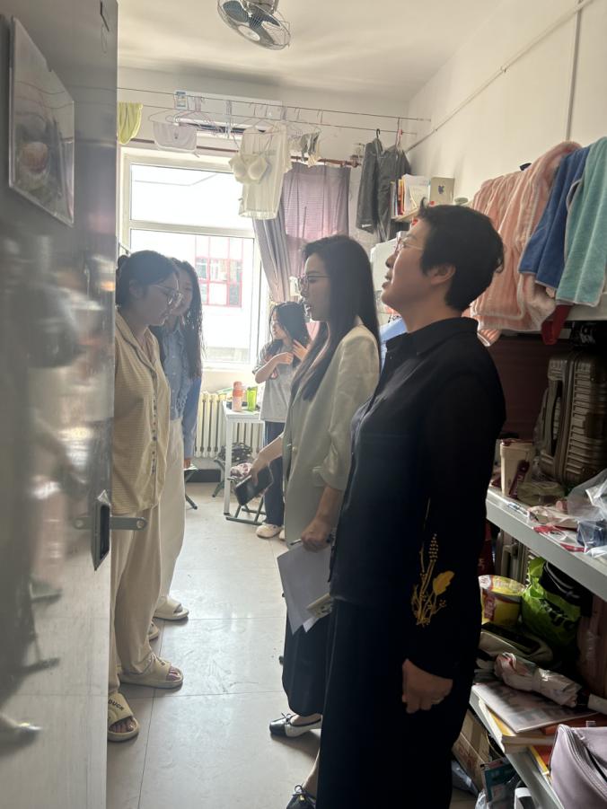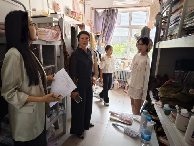 为确保国庆假期安全,加强学生宿舍安全管理,营造安全、整洁、和谐的生活氛围,2025年9月30日上午,beat365在线唯一官网党总支副书记董怀晶、学工办主任齐艳梅,团总支书记李思思深入beat365在线唯一官网学生宿舍开展了安全检查并探望留校学生。